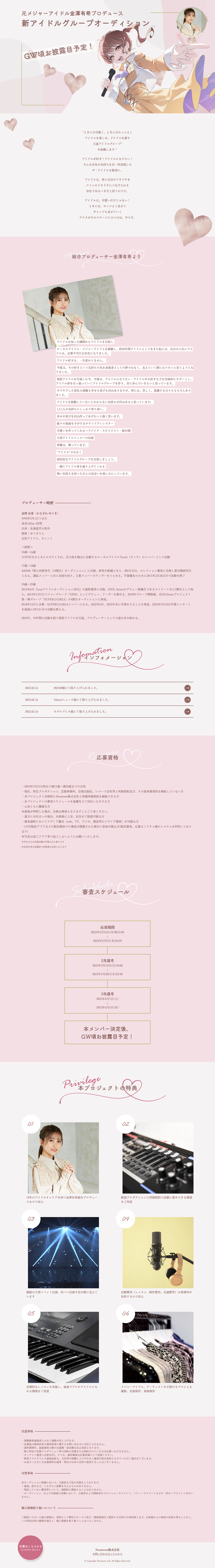 元メジャーアイドル金澤有希プロデュースの新アイドルグループオーディションの公式LPのデザインとコーディングを担当しました。